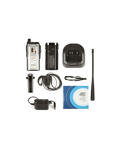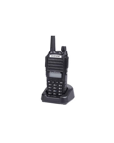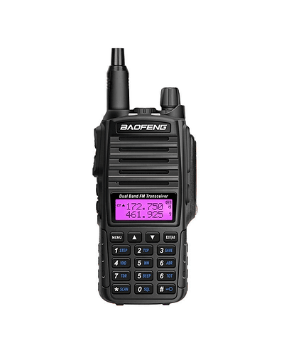 Handy Walkie talkie BAOFENG UV-82, modelo genérico del UV-82L y similares. Emisora de Largo alcance (+- 10 km). Handy Bibanda de potencia de salida 5W. Hasta 128 canales de memoria.Visualización 2 bandas con doble PTT. Linterna Led. Batería recargable 7. 4V 1800mAh. Radio con antena profesional 17 cms y auricular doble PTT incluido.